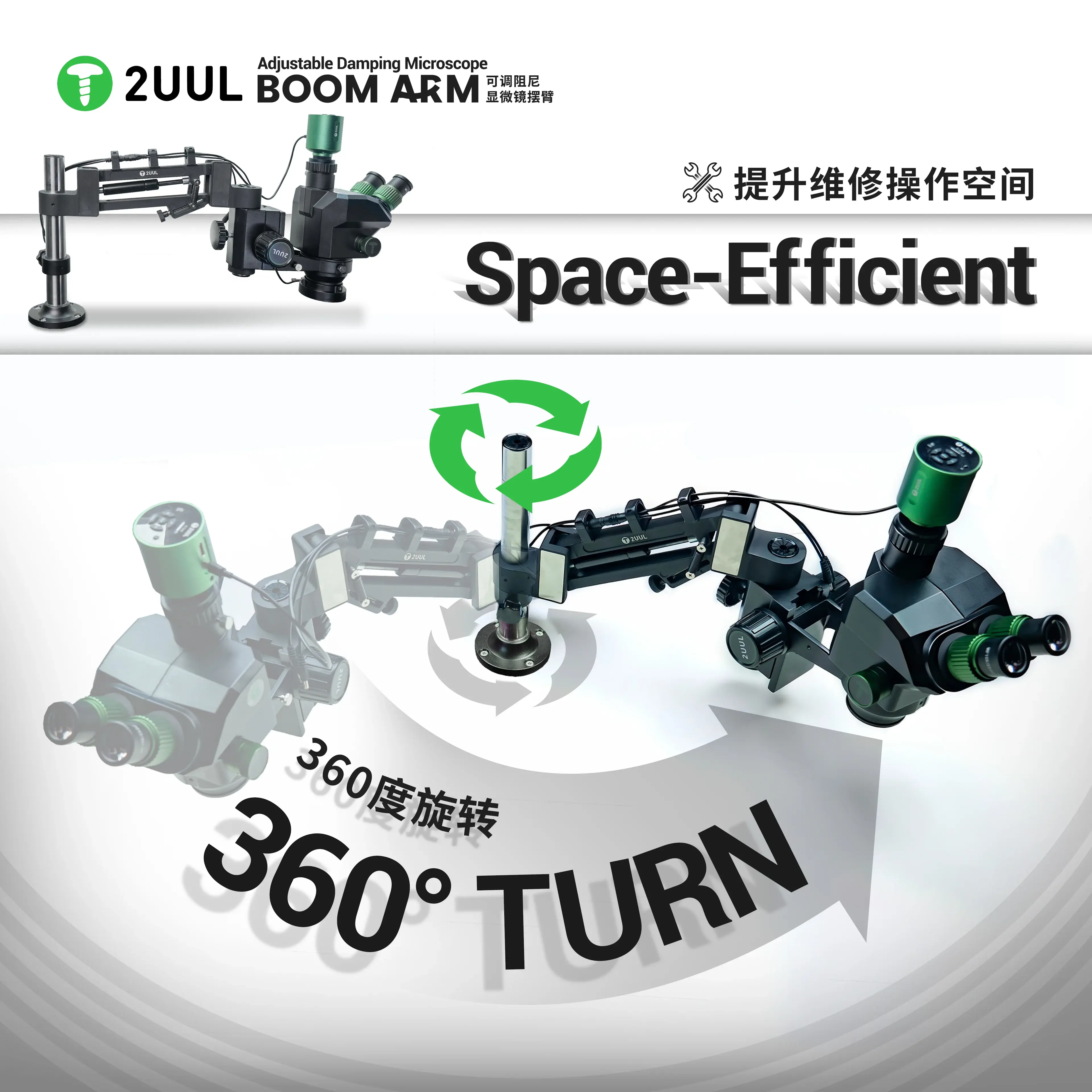 2UUL MS71 Adjustable Damping Microscope Boom Arm offers smooth, stable movement for precise repair work.