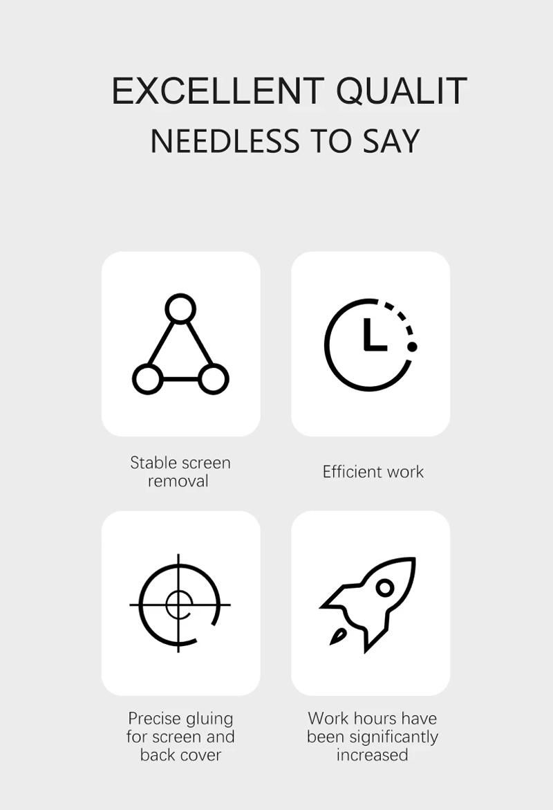 This machine significantly improves success rates in iPhone glass repair jobs, especially for premium and newer models.