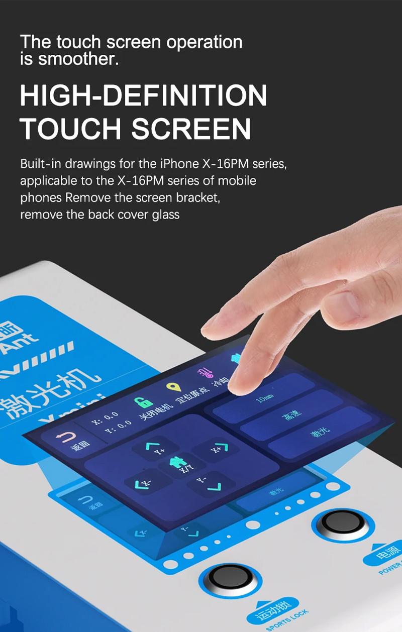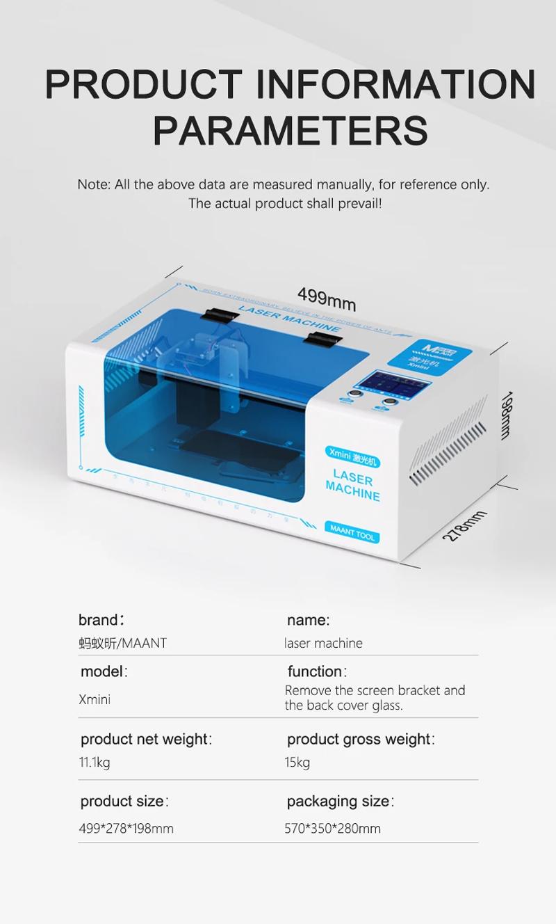 The MaAnt Xmini Laser Machine is a professional mobile repair tool designed for safe and precise iPhone back glass and screen bracket removal.